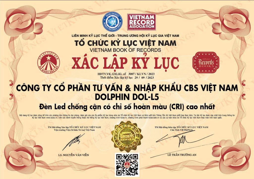 ✅ Đèn chống cận Dolphin có chỉ số CRI cao nhất Việt Nam, được Tổ chức Kỷ lục Việt Nam xác nhận